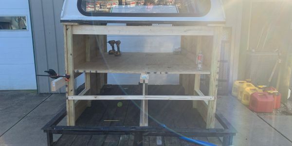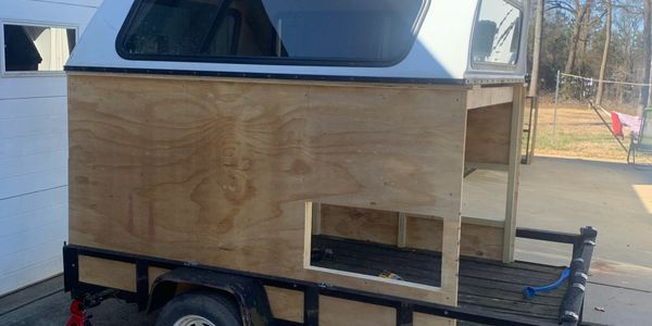 After much deliberation and drawing, I think I've come up with a idea. Instead of having to buy windows and doors, I found an old camper shell that fit a 6'6" truck bed. It already has sliding windows on the side and a hatch in the back that will make a great door. I'm using 3/4" treated plywood for the side walls and sleep floor. On the bottom of the trailer I've made two compartments that are approx. 24" tall and 30" wide for storing totes full of supplies. Above that area will be the sleeping area. It has approx. 40" of height so I can sit up and not hit the top, with room to spare.
